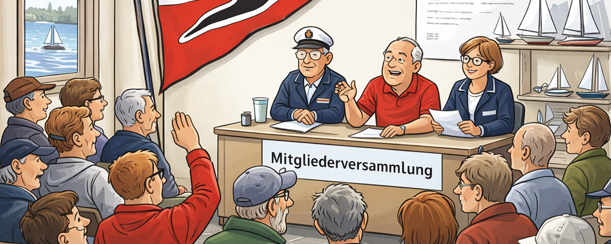 Am Samstag, den 21. März um 17 Uhr ist eine Mitgliederversammlung u. a. mit folgenden Themen geplant: Kassenprüferbericht, Neuwahl des Segelrates, Beschlussfassung auf Abstimmung eines Entwurfs zur Genehmigungseinreichung für das neue Clubhaus.
