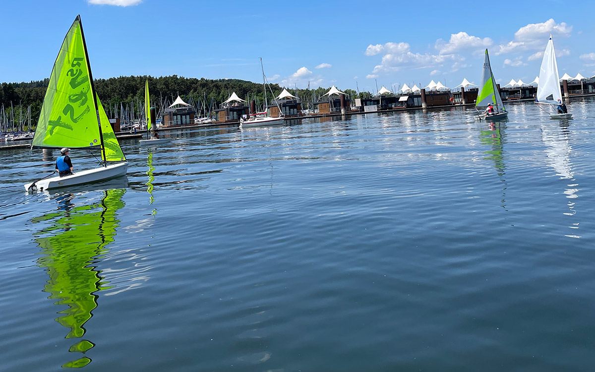 Wer schon einen Grundschein oder Sportbootführerschein Binnen hat, kann sich für unsere Jollensegelkurse am Brombachsee anmelden (es gibt einen Kurs für Erwachsene und einen für Jugendliche).